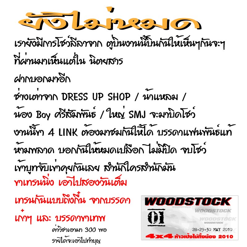 กิจกรรมภายในงานWOODSTOCK. OFF ROAD PARTY