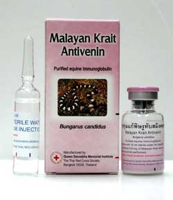 สถานเสาวภาสภากาชาดไทย ได้ผลิตเซรุ่มจำเพาะชนิด คือ ในเซรุ่มแต่ละชนิดละชนิดจะต้านพิษงูสปีศีล์ เดียวเท่านั้น ทำเป็นผงบรรจุในหลอดก่อนใช้เติมน้ำละลาย 10 มล. ต่อ 1 หลอด และควรทดสอบผิวหนังก่อนให้เสมอ ให้หยอดเข้าทางหลอดเลือดดำหมดภายในครึ่งถึง 1 ชั่วโมง
