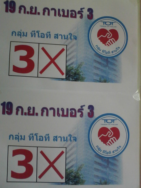 โค้งสุดท้าย ฝากพี่น้องชาว ทีโอที ช่วยเฮียสี่ ด้วย 19 กันยา กาเบอร์3....เท่านนั้น