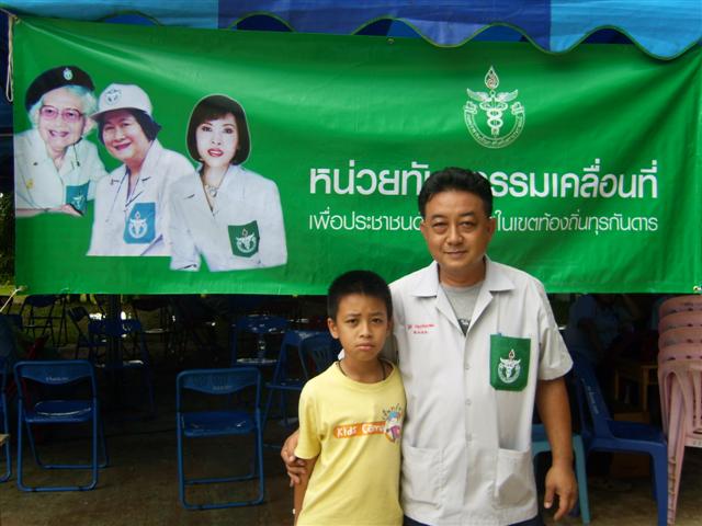 คุณลุง บุตร ศรีเล็ก หัวหน้าหน่วยทันตกรรม และ น้อง เอ็ม สุดหล่อ (มันไม่เถียงสักคำ)