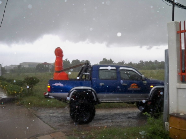 ถ่ายรูปเป็นที่ระลึกก่อนเดินท่างเขาบ้าน..ดูท้องฟ้าด้านหลังเสียก่อน (ขอบอก)