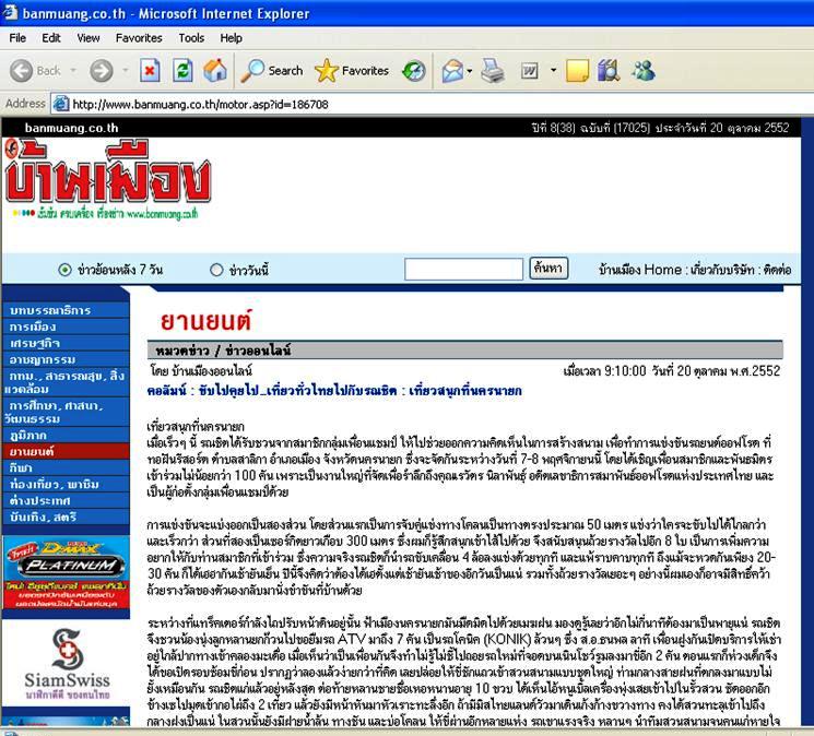 สื่ออย่างบ้านเมืองลงมาเล่นกับเพื่อนแชมป์ โอ้วสุดยอดขอบคุณ คอลัมน์ : ขับไปคุยไป…เที่ยวทั่วไทยไปกับรณชิต ...หนังสือพิมพ์บ้านเมือง ฉบับประจำวันอังคารที่20...ขอบคุณอีกครั้งครับ