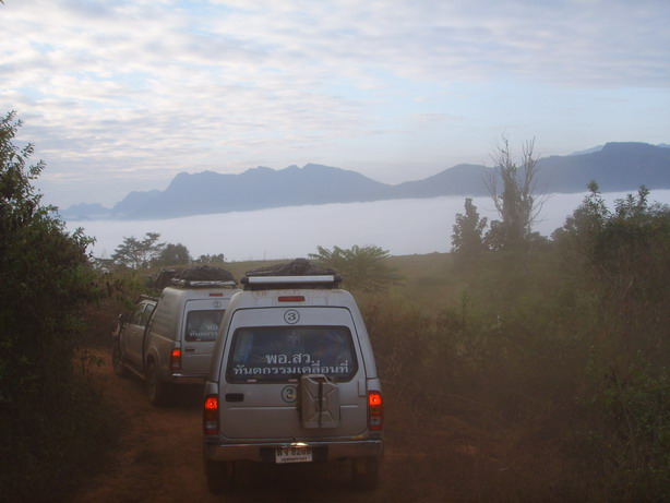 ทะเลหมอกเยอะมากๆๆๆๆๆๆ ที่นี่ จนต้องอดจอดรถ ถ่ายรูปไม่ได้ วันนี้ต้องขับรถจากความสูงที่ประมาณ 1000 กว่าๆ เมตร เพื่อลงไปที่ความสูง100-200 เมตร ที่ บ้าน สบเมย ทางลง ชัน มีเสียวเป็น ช่วงๆ