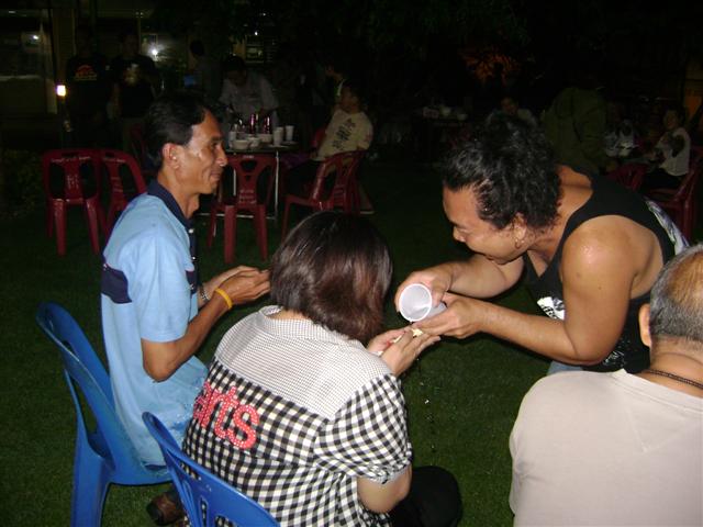 ..จับผู้ใหญ่ (ไม่ใช่กำนัน)มานั่งรอลูกหลานรดน้ำดำหัว