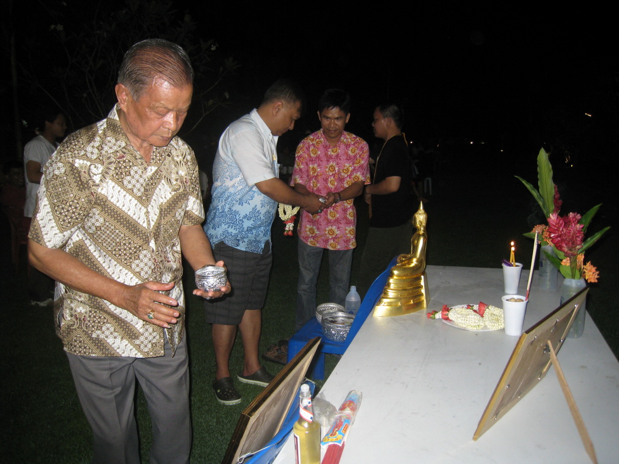 ..ปิดต้นฉบับเสร็จแล้วครับ..เข้าสู่บรรยากาศงานประเพณีสงกรานต์กลุ่มเพื่อนแชมป์ 2554 ณ บัดเดี๋ยวนี้ ..คุณตาสามารถ ศรีเงินยวง พร้อมลูกเขย พ.ต.อ.พิเศษ อังกูร คล้ายคลึง เริ่มพิธีการสงน้ำพระพุทธ