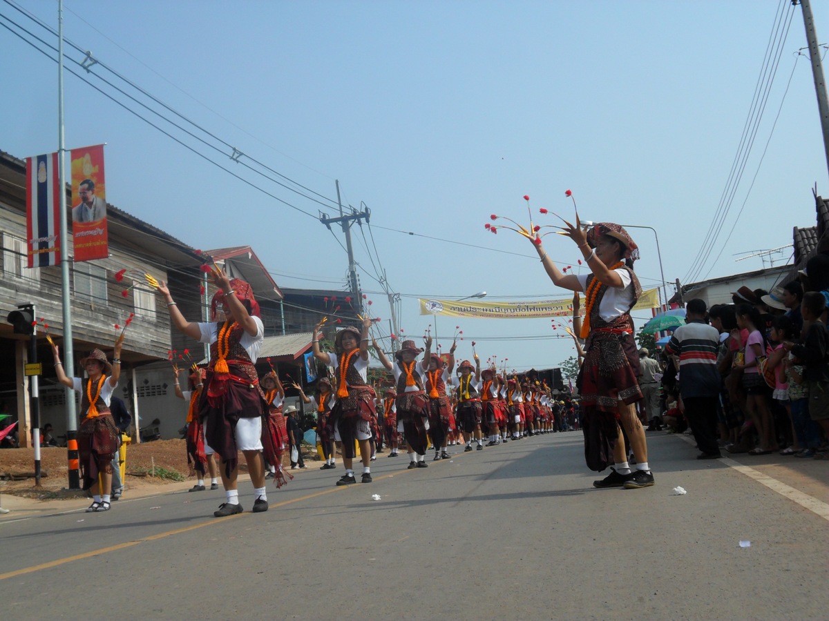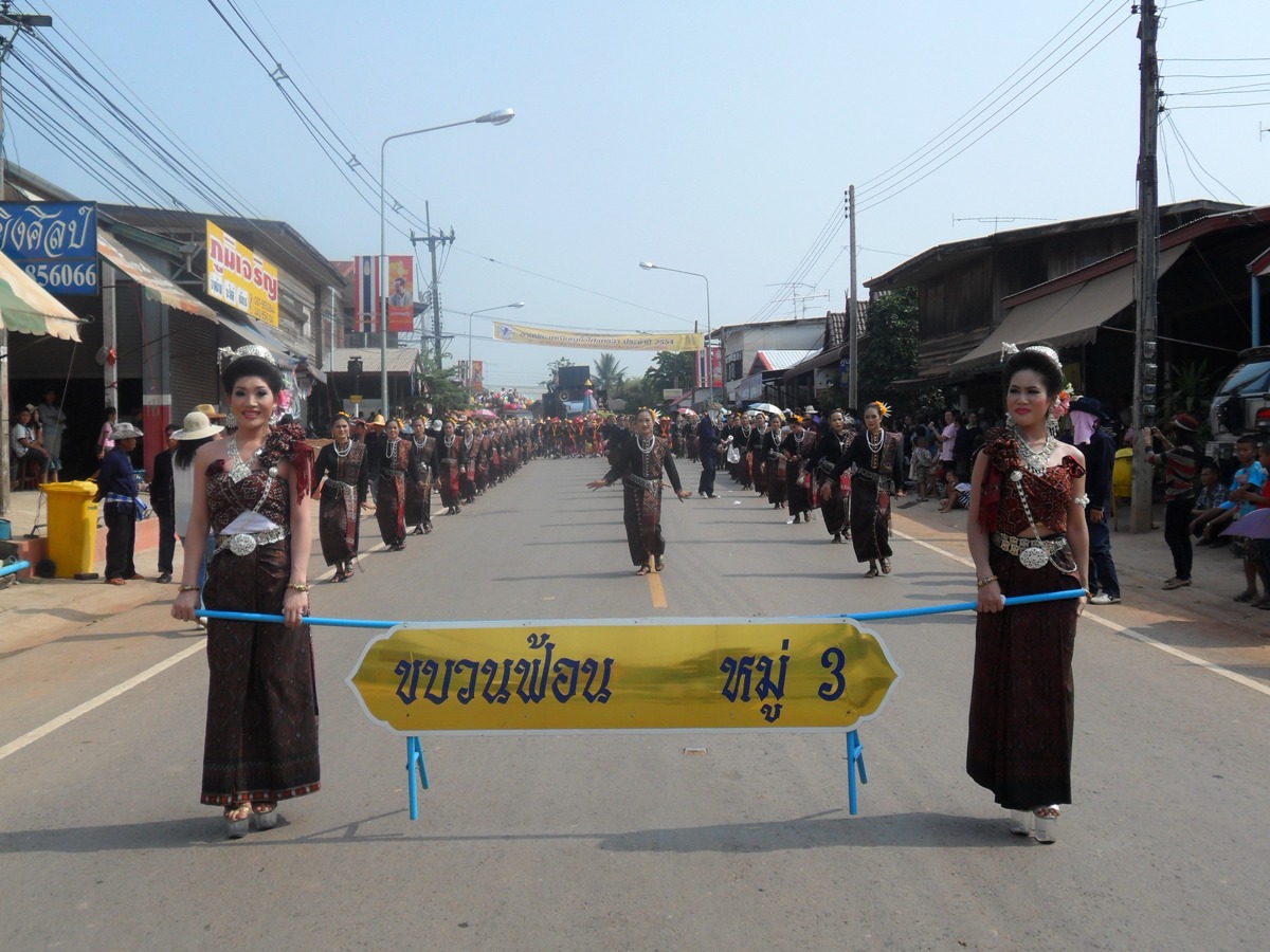 หลังจากประกวดขบวนแห่ประกวดลีลาการฟ้อนรำตลอดจนเส้นสายลายดนตรีพื้นบ้านตัดสินกันในวันเดียว ความสุขของชาวบ้านแต่ละขบวนต่างยิ้มแย้มแจ่มใสที่ประเพณีของพวกเขามีผู้มาให้ความสนใจอย่างมากมายก่ายกองเท่าที่ทีมงานสังเกตุยวดยานพาหนะป้ายต่างถิ่นต่างจังหวัดเยอะแยะไปหมดครับท่านผู้อ่าน หลังจากตัดสินความสวยงามของขบวนแห่ยาวเหยีดมากกว่าสามกิโลเมตรเสียงพิณแคนแดนอีสานกระหึ่มดังกึกก้องไปทั่ว ขณะที่ทีมงานนั่งปั่นต้นฉบับกันสดๆอยู่ห่างจากขบวนประกวดเสียงเครื่องดนตรีเหล่านั้นวิ่งมากระแทกแก้วน้ำโซดาแลน้ำแข็งหล่นแตกไปหลายใบมันกะเล่นกันให้ตายไปข้างทีมงานอดสงสัยใคร่รู้ไม่ได่แต่ไม่กล้าไปบอกกล่าวเล่าสิบกับใคร