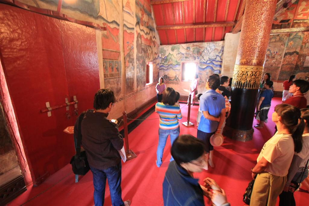 มัคคุเทศน้อย กำลังอธิบายความหมายภาพบนผนัง