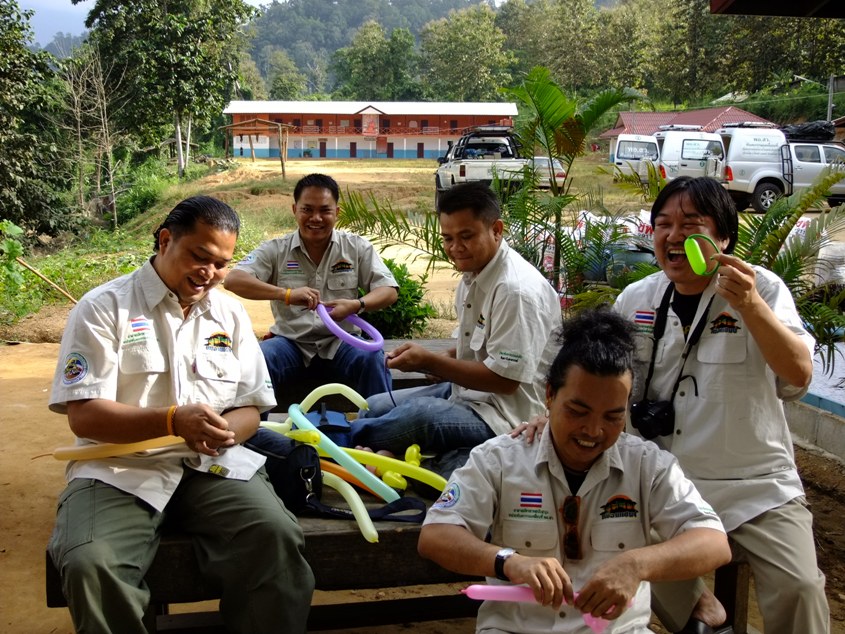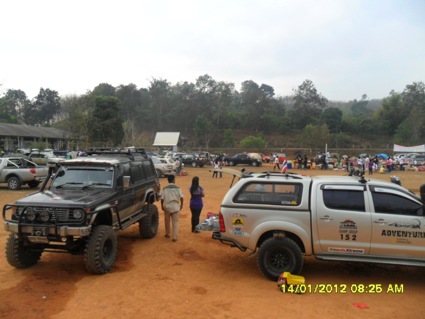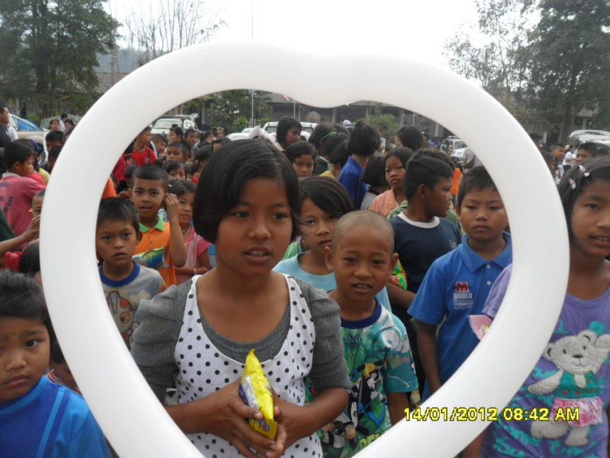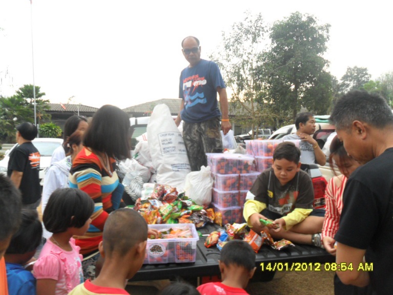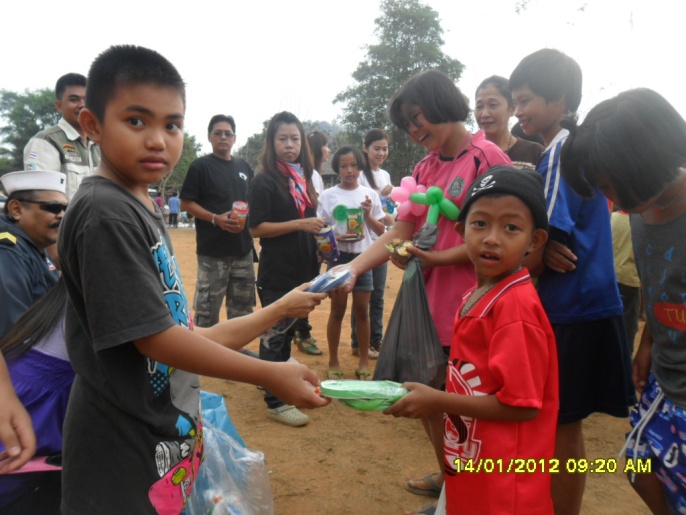 ผมเดินทางพร้อมคณะด้วยรถยนต์ขับเคลื่อนสี่ล้อในขบวนย่อยรวม 6 คัน เส้นทางมุ่งสู่ตัวเมืองกาญจนบุรี – ทองผาภูมิ – สังขละบุรี – โรงเรียนบ้านห้วยกบ แบบม้วนเดียวจบถึงที่หมายราวเที่ยงคืนเศษ ท่านผู้อ่านครับสิ่งที่พบเห็นบริเวณโรงเรียนแน่นขนัดไปด้วยยวดยานพาหนะมากมายกว่าร้อยคันที่มาร่วมงาน เต้นท์ที่พักซุ้มอาหารกระจัดกระจายไปทั่วบริเวณโรงเรียน บ่งชี้ให้เห็นถึงความสามัคคีของ 2 หน่วยงานได้ชัดเจน แม้นว่าสถานที่จะไกล โรงเรียนไม่ใหญ่นัก แต่น้ำจิตน้ำใจกลับมากมายยิ่งใหญ่ท่วมท้นกันเสียจริงครับ เริ่มจากรุ่งเช้าอันยกให้เป็นวันของเด็กๆกิจกรรมการละเล่นสิ่งของบริจาค มากมายหลายรายการต่างถูกขนลงจากรถมากองรวมกันพร้อมกับจำหน่ายจ่ายแจกให้กับเด็กๆ 3-4 หมู่บ้านในละแวกใกล้เคียงตลอดจนผู้ปกครองยังไม่ละเว้น ต่างล้วนได้รับแจกจ่ายกันทุกคนที่เข้ามาร่วมงานเรียกว่าขนกลับบ้านกันแทบไม่หวาดไม่ไหวสนุกสนานกับการละเล่นไปตามๆกันทั้งผู้รับและผู้ให้ เห็นสีหน้าท่าทางของคนที่ได้รับนับว่ามีความสุขที่ยิ่งใหญ่ หากแต่ผู้ให้กลับมีความสุขที่ใหญ่กว่านัก ครับท่านผู้อ่าน