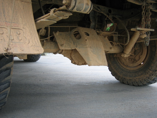 มาก้มสำรวจสภาพใต้ท้อง... ก็พบว่าการ์ดกันเพลาท้าย.. เจอหินเข้าอย่างจังถึงกับพลิกกลับไปทางด้านหลังเลย พร้อมกับเศษดินลูกีงติดเต็มกระโหลกเพลาท้าย...