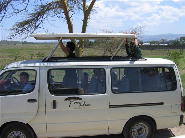 พวกเราแยกกันนั่งรถตู้แบบเปิดหลังคา 2 คัน มีโชเฟอร์เป็นชาวเคนย่า พาตระเวนท่องเที่ยวชมสัตว์ในอุทยานนากูรู และมาไซมารา