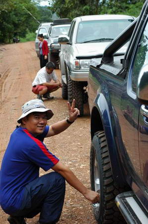 แล้วก็มีติดเป็นครั้งแรก ของทริป เสื้อขาวกะนำเงิน นั่นเป็นco-driverของผมครับ เดินลงไปดูว่าเป็นไงบ้าง