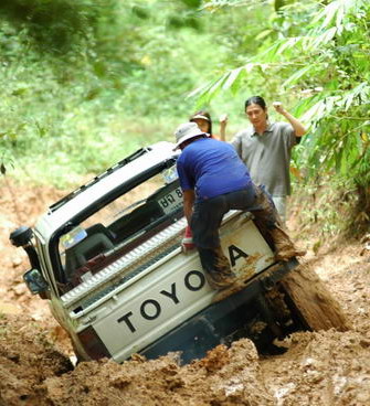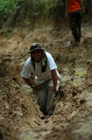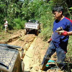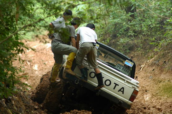 ก็กลับมาถึงเนินร่องลึกที่ลงมา จาร์ยหนอน สำรวจทางใหม่ช่องอื่นที่มีคนทำทางเบี่ยงไว้แล้ว หลังจากเข้าไปได้ซักพัก พร้อมกับเสียงคำรามกระหึ่มของเครื่องยนต์ ออกมาจากราวป่า(คาดว่าคงลองปั่นดู) แกก็กลับออกมา พร้อมกับเสียง ว.ว่า "ไปไม่ได้ว้อย...กลับทางเดิม" เป็นคำตอบสุดท้าย