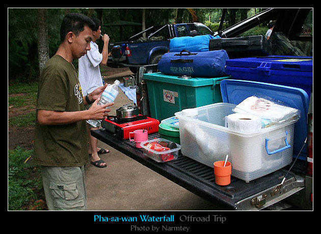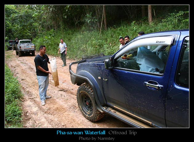 และในทริปนี้ได้ทราบมาว่าท่านพี่ ท่านอา แต่ละท่าน ได้เพิ่ม option เปลี่ยนยาง ต่างๆนาๆ เพื่อหวังจะพิชิตน้ำตกผาสวรรค์ล่างนี้ให้จงได้ ผมเลยได้แต่นึกอยู่ในใจว่าคงได้มีโอกาสเห็นน้ำตกกันล่ะคราวนี้ (แม้จะหวั่นๆใจอยู่บ้างก็ตาม)