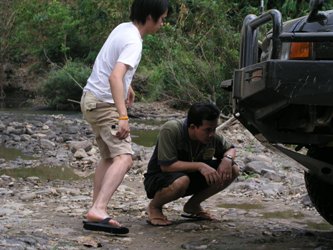 เหตุเกิดที่ห้วยน้ำใส กาญจนบุรีเมื่อวันอาทิตย์ที่ผ่านมานี้เอง อันเนื่องมาจากการที่ปั้นล้อ 33 นิ้ว มากเกินไปทำให้เฟืองลูกหน้าแตกและทำให้เสื้อเพลาทะลุเป็นรูประมาณนิ้วโป้งเลยครับ จำได้ว่าเคยอ่านกระทู้ของน้าเฟอร์รารี่เกี่ยวกับเรื่องนี้ ไม่คิดว่าจะมาเจอกับตัวเอง แต่ลองไปหากระทู้เดิม ลิงค์หายไปแล้วครับ