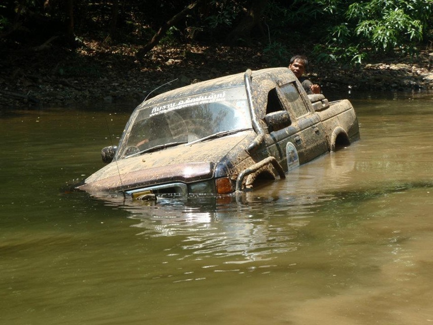 ดูอย่างตามภาพประกอบก็ได้ บริเวณด้านขวาของภาพมีแม่ปลากำลังพาลูกๆออกหาสาหร่ายเพื่อกินประทังชีวิต น้าจานทองยังยอมที่จะเลี่ยงไปทางซ้ายของภาพรู้ทั้งรู้ว่ารถอาจจะจมน้ำได้เพราะไม่ได้สำรวจเส้นทางไว้ นี่แหละสปิริตของคนออฟโร๊ดขนานแท้ กดไร้ ให้ 10 ที ครับ