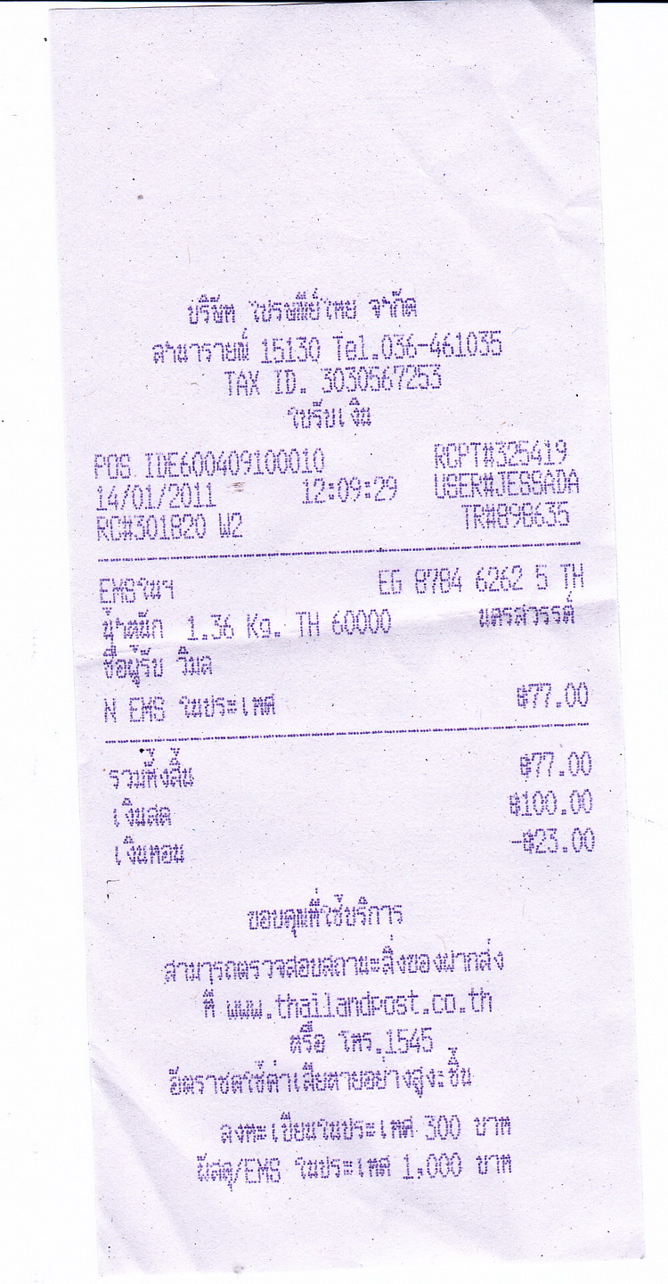 ส่งไมล์ให้เเล้ว ครับ เลขที่EMS = EG878462625TH ขอบคุณครับ