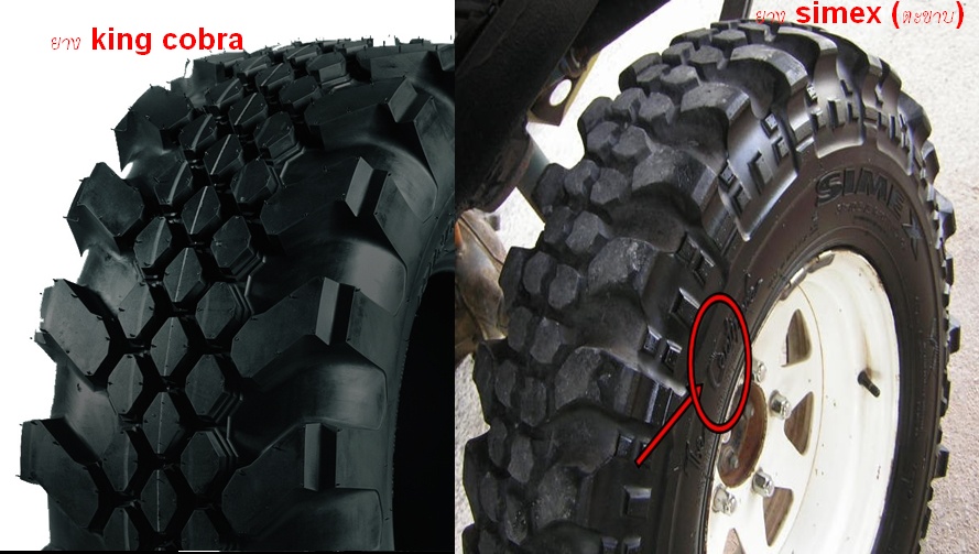 -ยาง king cobra คือยางมัด( mud terrain) และยางตะขาบก็คือยางมัด( mud terrain) เช่นกัน