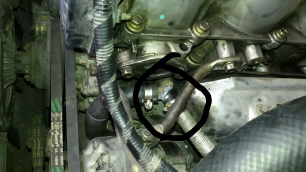 WLT 2.5 ท่อน้ำที่อยู่เหนือ ไดสตาร์ทขึ้นมาหน่อยมันรั่วเลยใช้วิธี เชื่อมตะกั่วใช้ไปก่อน จากรูปในวงกลม มันเป็นท่อที่วิ่งต่อออกมาจากเครื่องเลย