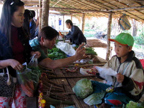 พ่อค้าชาวม้งน้อยๆ นั่งคอยผู้มาซื้อ