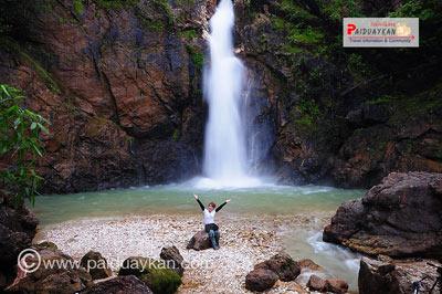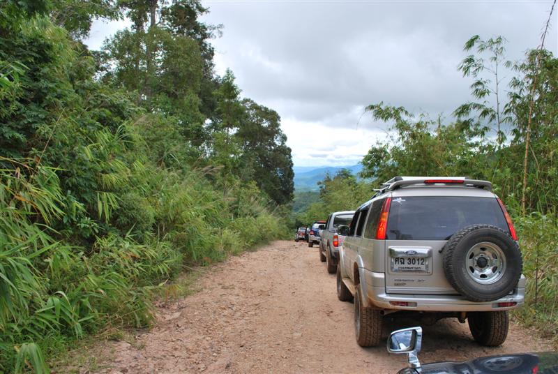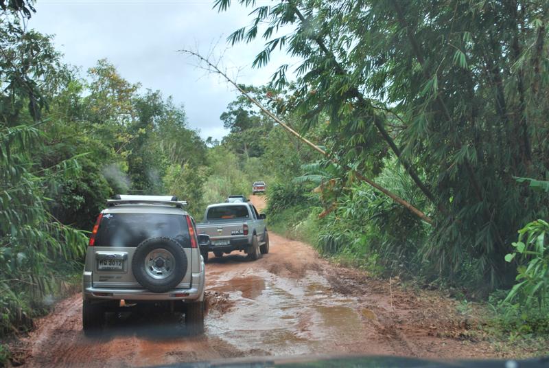 ถ้าจะไปทองผาภูมิ มันมีทั้งแบบ ธรรมดา กลางๆ และ สุดขั้ว อย่าง ปิเต็ง แค่ ถ้าเอาไปกันได้หมด มันเป็นทางขึ้นเขาลาดยาง ซะมาก แต่ ทางแคบ คล้ายๆกับทางสังขละ น้าท่านใดที่จะขึ้นแล้วมีปัญหาเรื่องความร้อน คงต้อง ตรวจสอบรถก่อนออกทริปนี้อะครับ ถ้าที่ผม เคยไปก็คือ ลงไป จ๊อกกระดิ่น ครับ ถามว่าทางโหดไหม ถ้าฝนไม่ตกก็ไม่มีปัญหาหรอกครับ แต่ ถ้าฝนตกติดต่อกันหลายๆ วัน ดินมันจะเป็นหนังหมู เละ ไม่ต่างกับ บ่อโคลนที่น้า เจอกันมา แต่ ต่างกันที่ ขวามือคือเหว ขาลงไม่เ้ท่าไร แต่ ขาขึ้นนี่เหนื่อยหน่อยเพราะโคลนเละตลอด แต่ ขึ้นได้ เพราะ ผม ก็รถธรรมดา ยาง at อาศัยเทคนิคบิดซ้ายบิดขวาดูลายดีๆ ใช้กำลังเครื่องกำลังเกียร์ค่อยๆส่ง ขึ้นมาได้ แต่ต้องระว้ง เพราะขาขึ้น ซ้ายมือคือเหว ข้างล่างกางเต้นท์ ได้ มีที่กางเต้น เป็นริม ลำธาร ก่อนเดินไปน้ำตก แต่ทาก ชุมเอาเรื่องอยู่ เรื่องทางไม่น่ามีปัญหา ครับ แต่ผมกลัวอย่างเดียว กลัวจะไปจะเอ๋ กันเยอะ แล้วที่จะไม่พอ ห้องน้ำมีแต่เหมือนจะใช้การไม่ได้ อาจแก้ไขแล้วแต่มีน้ำจาำกลำธารของน้ำตกตลอด เรื่อง ทาง เท่าที่รู้ ทาง อบต.อีต๋อง จะเข้าไปเกรดทางอยู่เรื่อยๆเพราะทาง มักจะโดนขาโหด ทั้งปั่น ซะพังอยู่เป็นประจำ