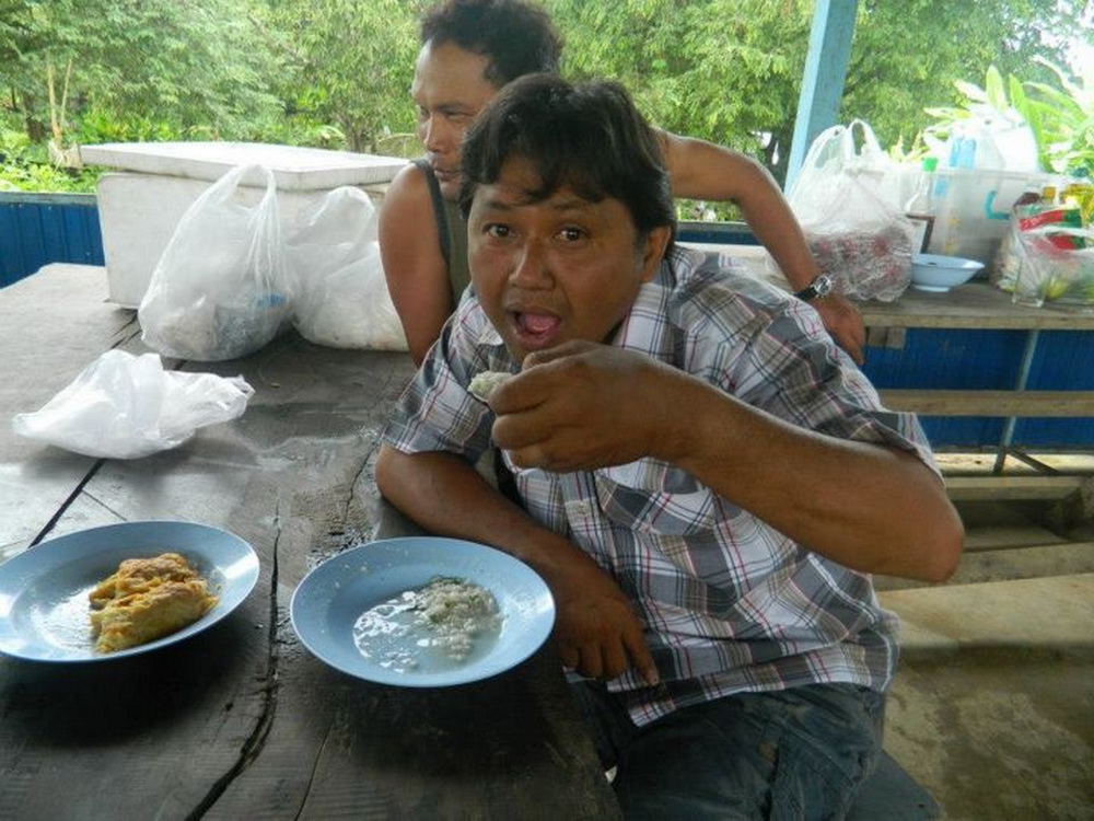 เฮียณรงค์พูดว่า...อ้าว..พวกแม่บ้านกลับไปที่โรงเรียนกันได้เลย แล้วจัดการหุงหาอาหารกันได้เลย ของสดของคาวเฮียเตรียมไว้หมดแล้ว ทั้งหมู ไก่ ปลาคัง จะทำอะไรก็ทำกันได้เลย ส่วนเฮียขออยู่ดูแลเพื่อนพ้องทางนี้ก่อน