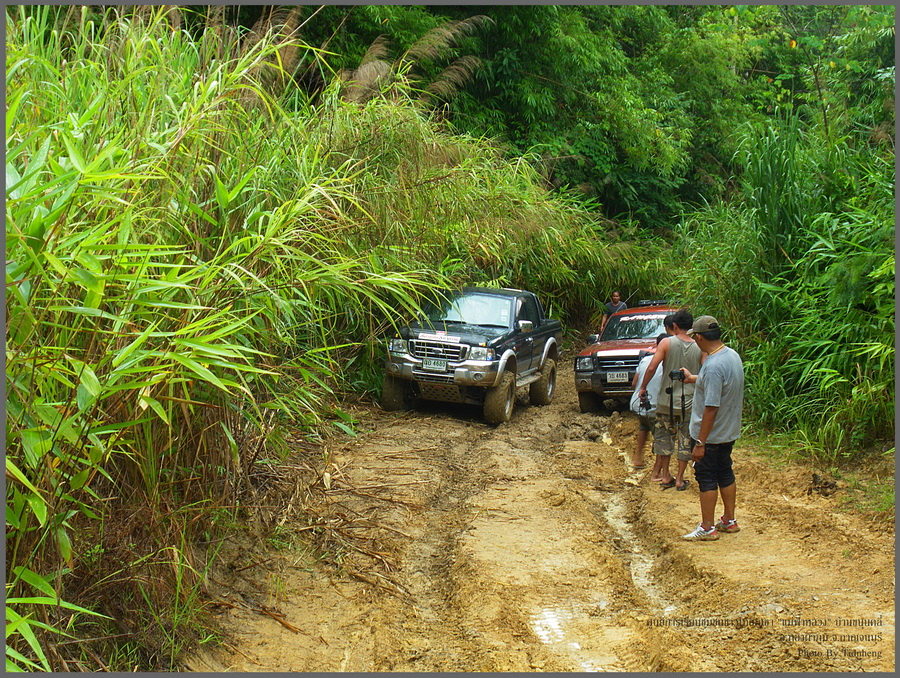 จากยอดเนินผมค่อยๆเดินลงไปที่รถเพราะลื่นมากๆ ในใจคิดไปต่างๆนาๆ คันอื่นเขาเครื่องยนต์ดีเซลแต่เราเบนซินติดแก๊ส ถึงจะยางคิงแต่เฟืองเดิมทางก็ทั้งชันทั้งลื่นขนาดนี้ เราจะไหวมั๊ย