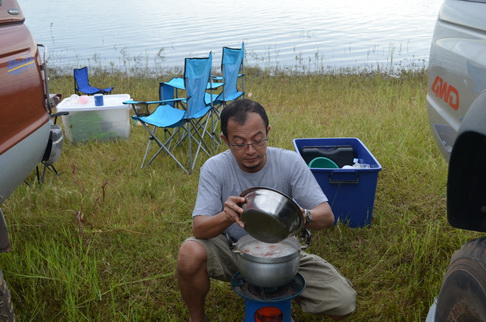 พ่อครัว กำลังทำข้าวต้มให้เด็กๆๆ ตอนเช้า ก่อนออกเดินทาง
