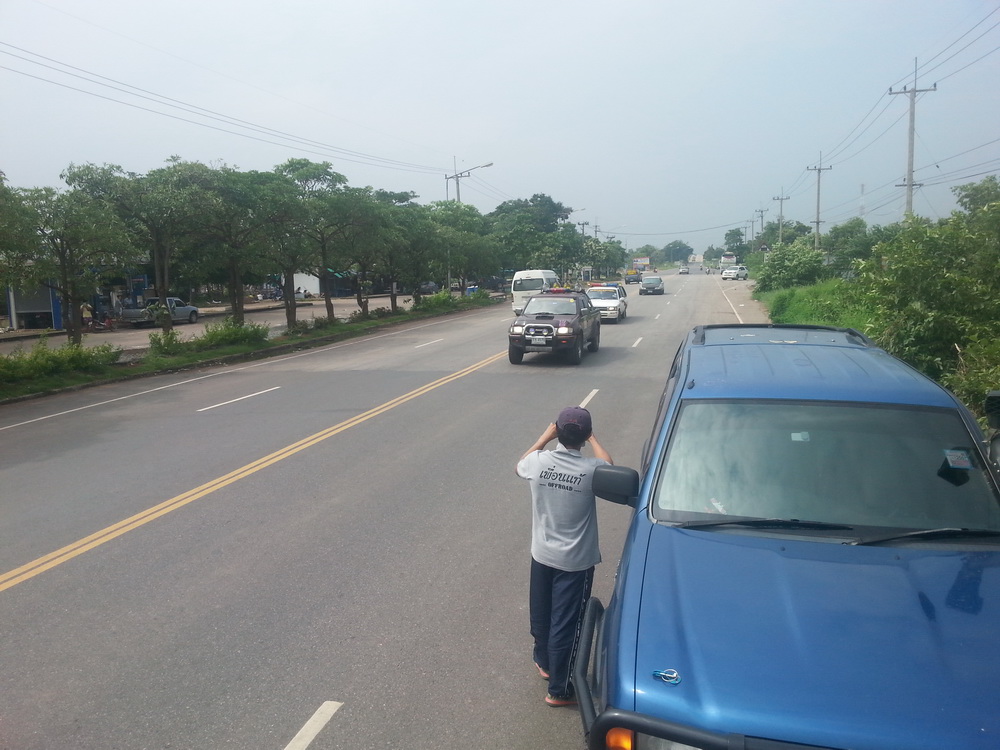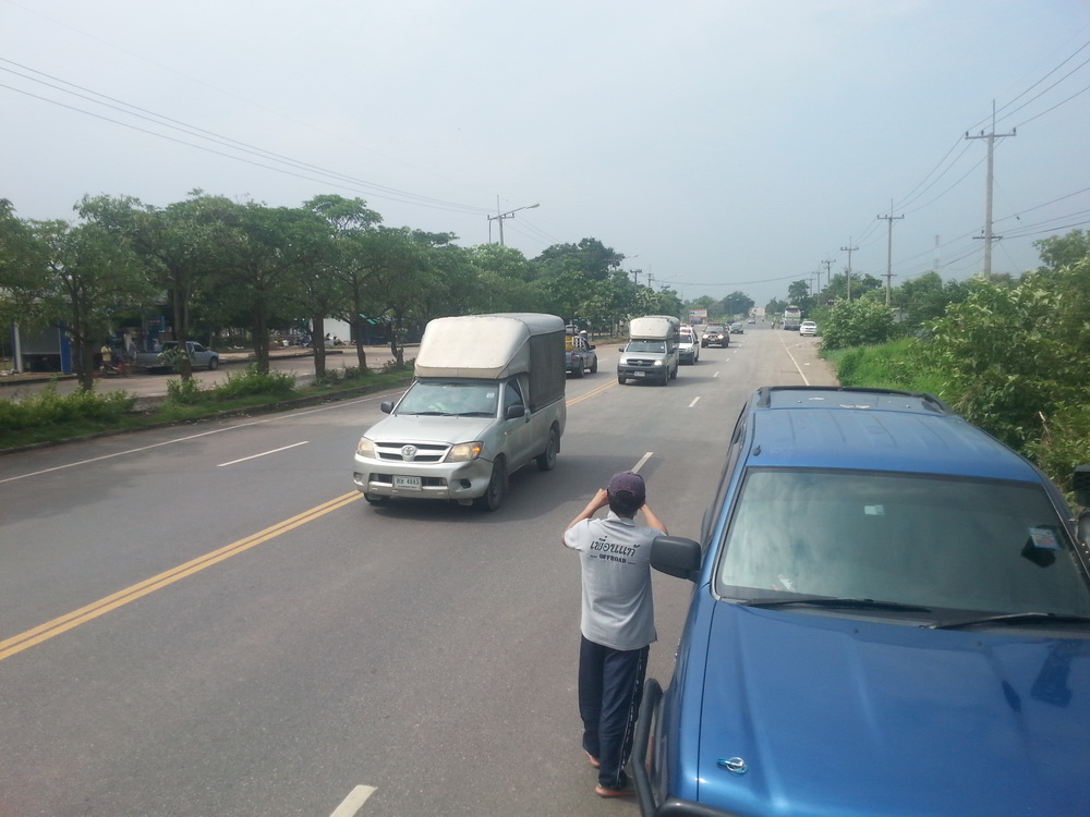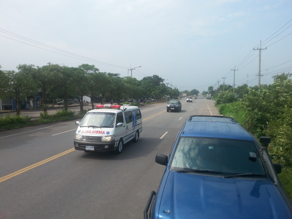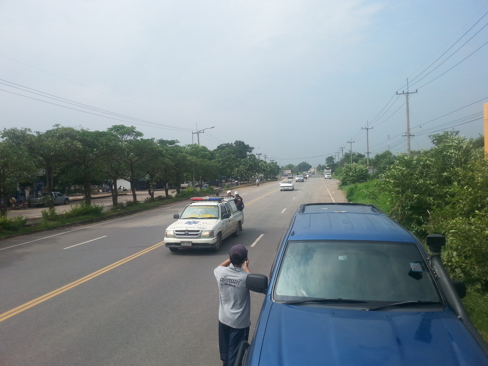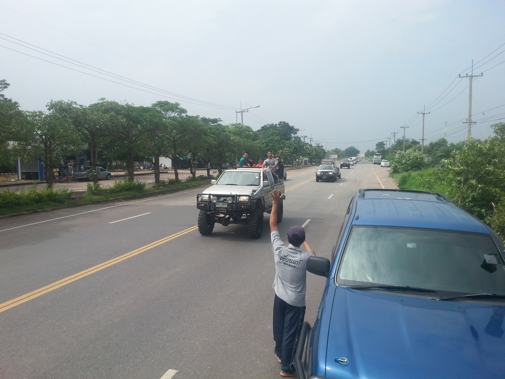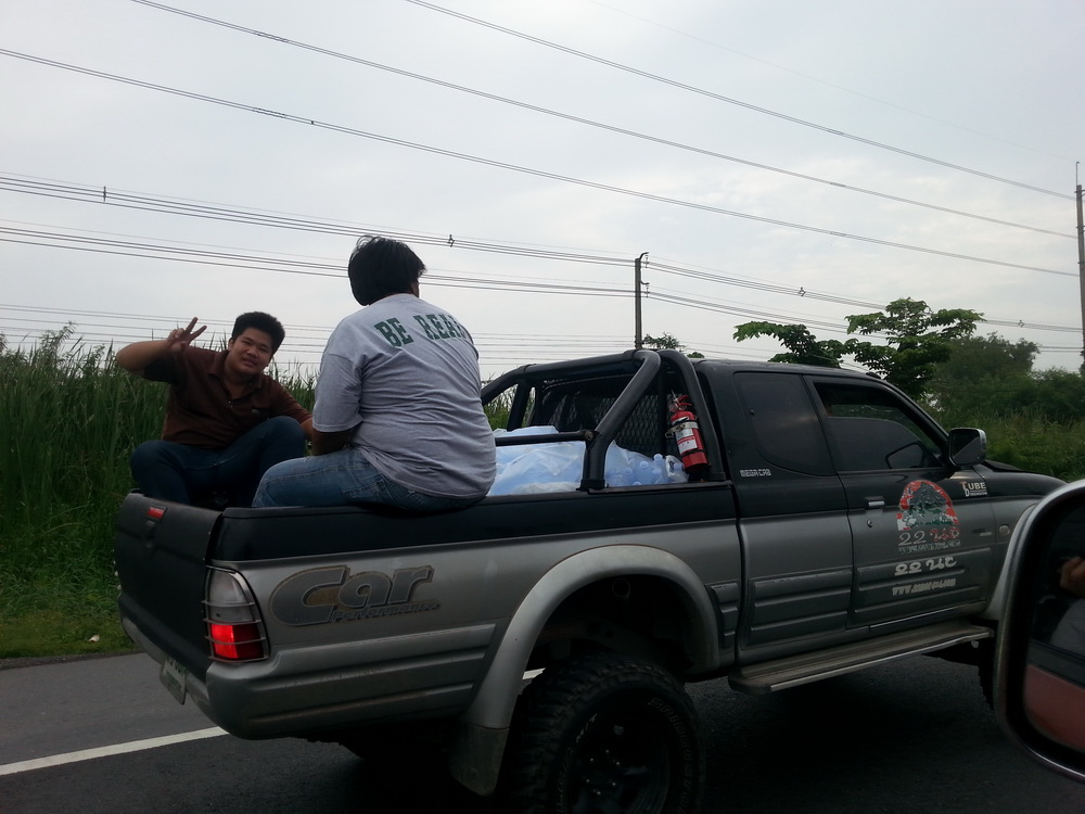 ผมกับน้ากีร์ต้องเดินทางกันมาลำพัง 2 คัน เหตุเพราะทางกลุ่มใหญ่เค้าเอารถแห่รอบเมืองครับ เค้าออกจากการขนของที่สำนักงานเขตคลองเตย ขบวนแห่เข้าเส้นบางนาตราด วิ่งไปเลี้ยวเข้าตรงบางวัว ตัดเข้าตัวเมืองฉะเชิงเทรา วิ่งกลับเข้าสุวินทวงศ์ แล้วมาเลี้ยวขวาตรงทางแยกที่จะไปบางน้ำเปรี้ยว