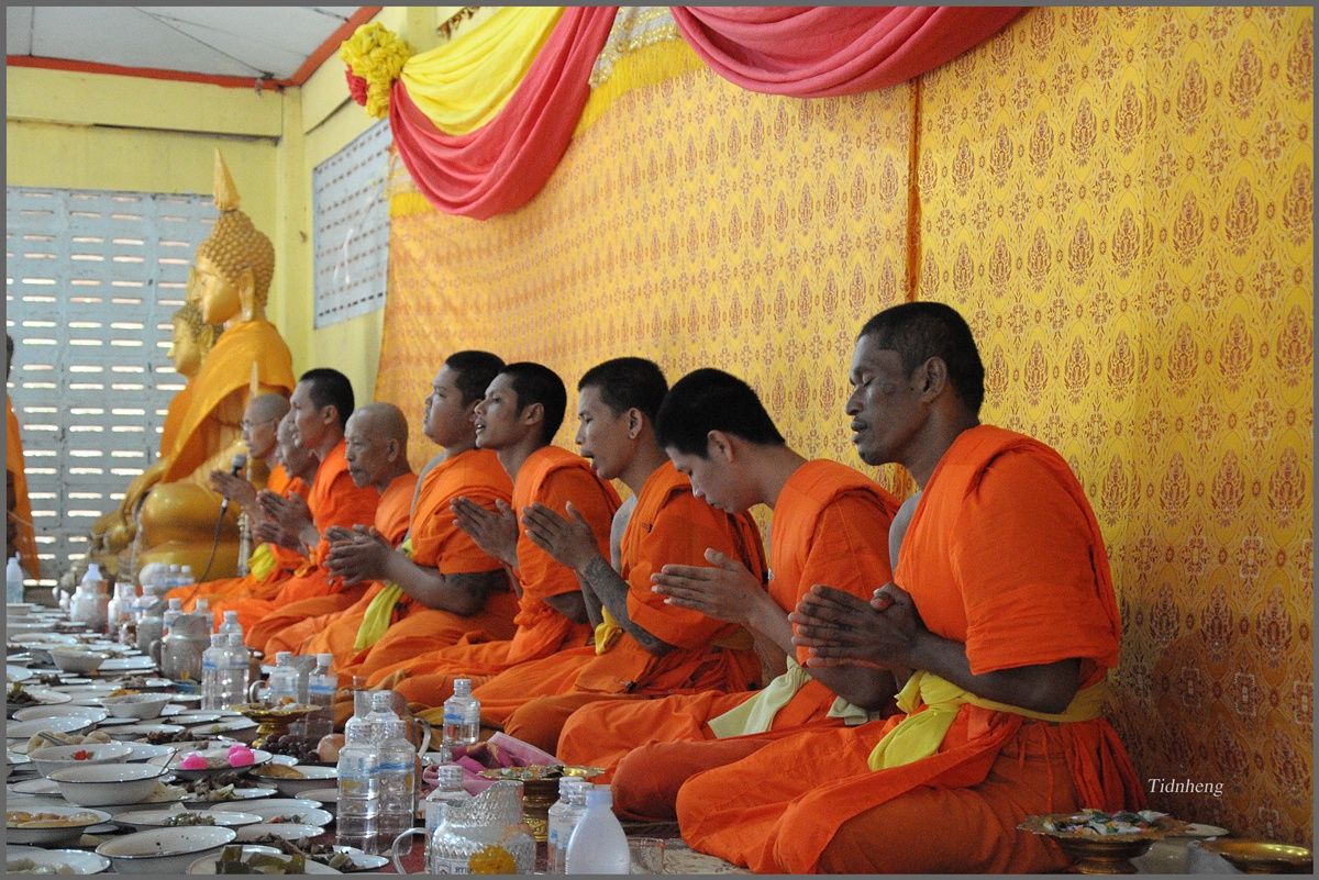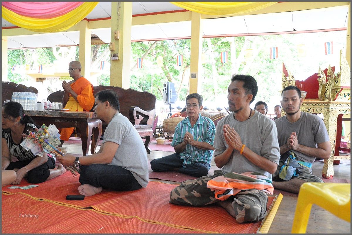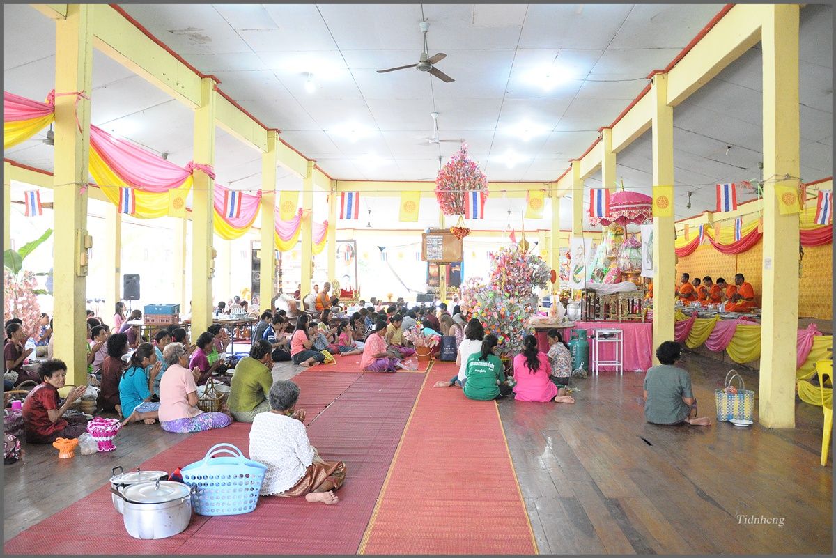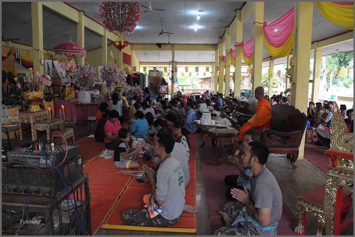 เกือบ7โมงเช้าก็ได้ยินเสียงประกาศผ่านลำโพงเรียกให้ผมไปเก็บภาพที่ศาลาอย่างด่วน เพราะชาวบ้านมาเตรียมตักบาตร ตอนนั้นกำลังเร่งมือเก็บเต๊นท์หลังเล็กๆที่นอนได้5-6คนแต่ผมนอนคนเดียวเปลี่ยวกาย ขนขึ้นรถเหงื่อท่วม