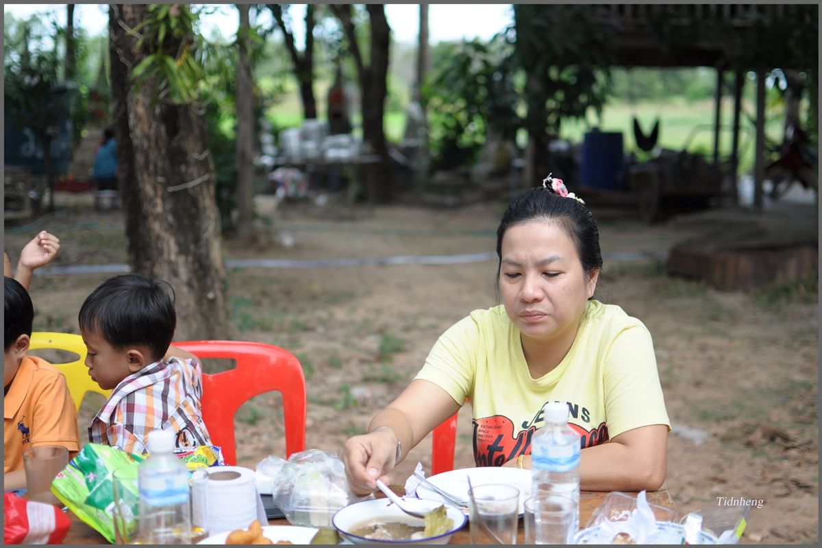 ผมเกิดอาการตาลายก็เลยเดินไปที่โรงครัวก่อนระหว่างที่หลวงพ่อกำลังเทศน์ ก็ได้เจอกับหนุ่มนั่งหล่อเรียงแถว น้ามะเดี่ยวตักข้าวให้ผมจานนึงรีบโกยเข้าปาก