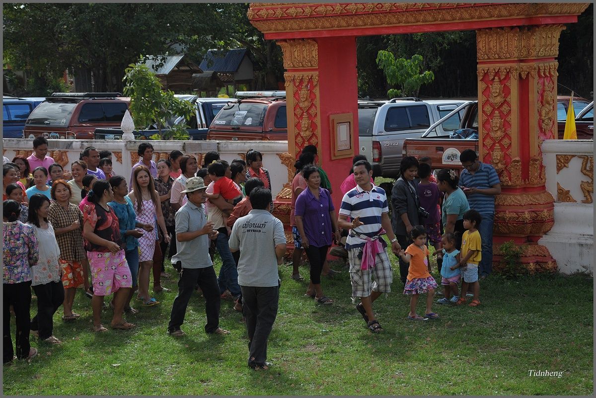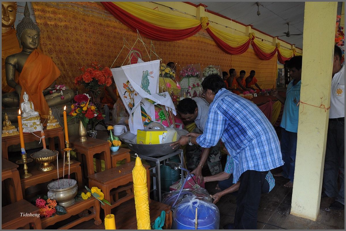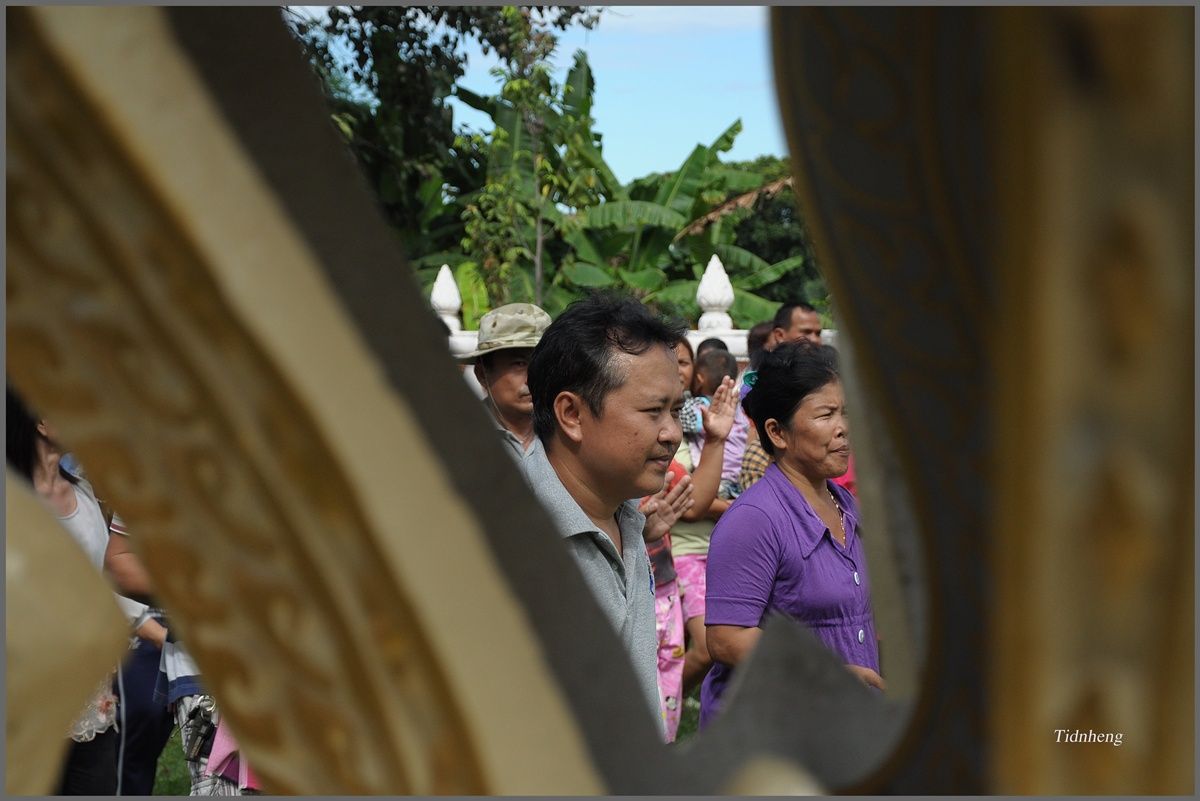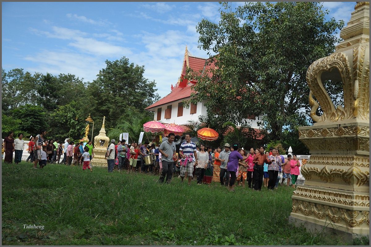 พระเจ้าอาวาสรับประเคนด้วยการนำสายสิญจ์ล้อมรอบของถวายทั้งหมด แล้วให้พวกเราพร้อมทั้งชาวบ้านได้ถวายพร้อมกันโดยถ้วนหน้า ผมเองก็ได้เกาะใบบุญเฮียณรงค์และเจ๊ตุ่นไปในคราวเดียวกัน