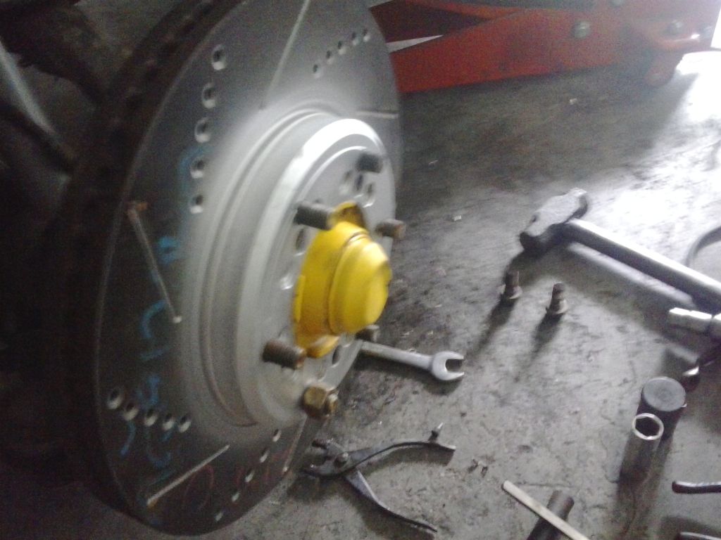 การแปลงต้องทำสองอย่างหลักๆคือทำขายึดเพื่อติดตั้งคาลิบเปอร์ และ2เจาะจานเบรกเป็น6รูให้เหมือนดุมของเรา