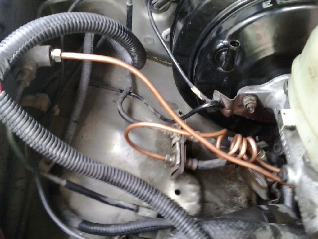 แต่สิ่งที่ต้องแปลงคือท่อน้ำมันของเดิมอยู่ขวามือคนขับ อันใหม่อยู่ซ้ายมือคนขับ อันนี้ต้องต่อแป๊ปใหม่ คือตอนไปเลือกหม้อลม ผมเจอลูกที่ท่อน้ำมันอยู่ขวาแล้ว แต่สภาพมันเป็นสนิมเลยไม่เอา ลูกนี้ใหม่กว่าก็เลยต้องต่อแป๊ปอย่างนี้ครับ