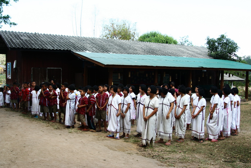เด็กๆมาเข้าแถวรอต้อนรับ