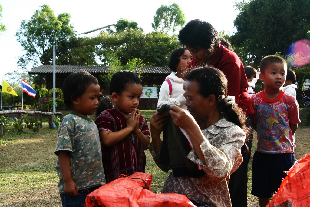ก่อนสิ้นปี พอจะมีงบเหลืออยู่บ้าง อยากไปเที่ยวเหนือด้วย หาเสื้อกันหนาวไปฝากเด็กๆสักร้อย สองร้อยตัวดีกว่า ไปๆ มาๆ ปาเข้าไป ห้าร้อยกว่าตัว พร้อมอุปกรณืการกีฬา พอจะมีเงินเหลืออยู่บ้าง เลยทิ้งเงินไว้ให้ครูที่ รร.บ้านจันทร์ สาขาแจ่มน้อย ไว้สร้างบ่อเก็บน้ำ ไว้ใช้ดื่มกิน