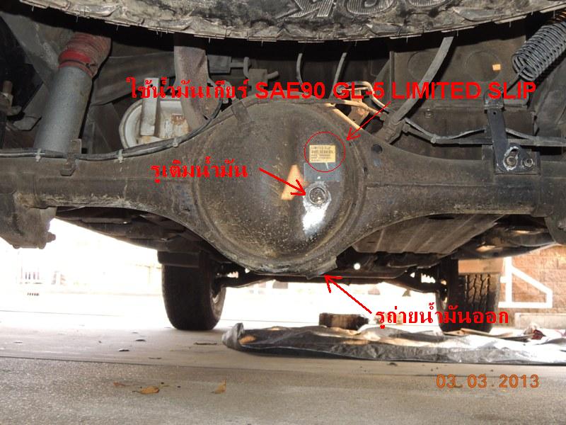 สุดท้ายที่เฟืองท้ายหลังครับ พอดีว่ารถผมยังไม่ครบกำหนดเปลื่ยนน้ำมันเฟืองท้าย ก็เลยมีเพียงแค่ รูปแสดงตำแหน่งรูเติม และรูถ่าย ให้พอนึกภาพกันออกเท่านั้นครับ