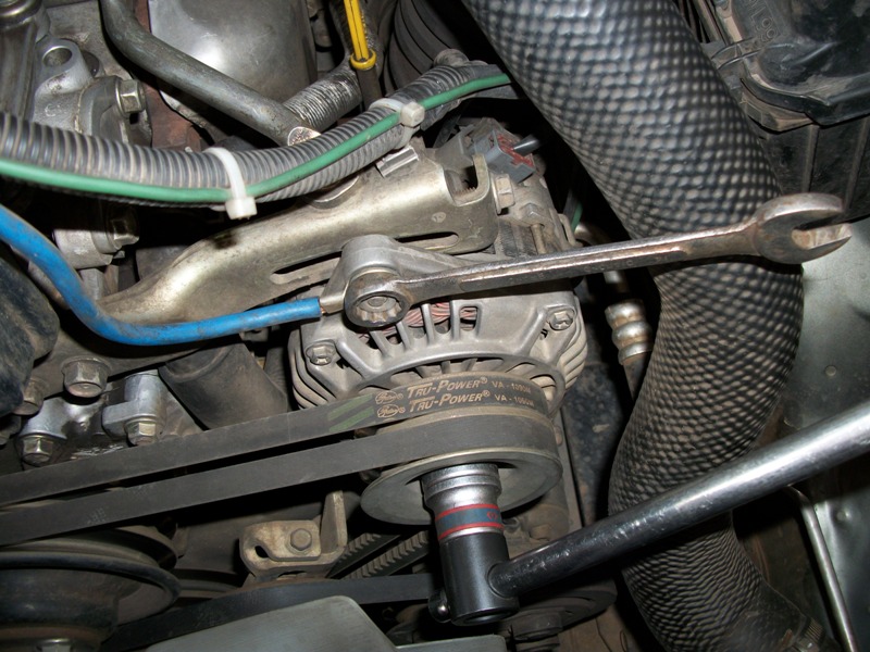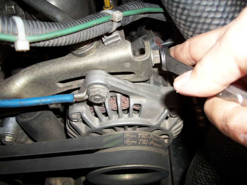 แล้วเราก็หมุนไดชาร์จเพื่อเลื่อนน็อตฟรีปั๊มตัวต่อไปให้มาอยู่ในตำแหน่งตรงข้ามสายพรานแล้วคลายออกสักเกลียว
