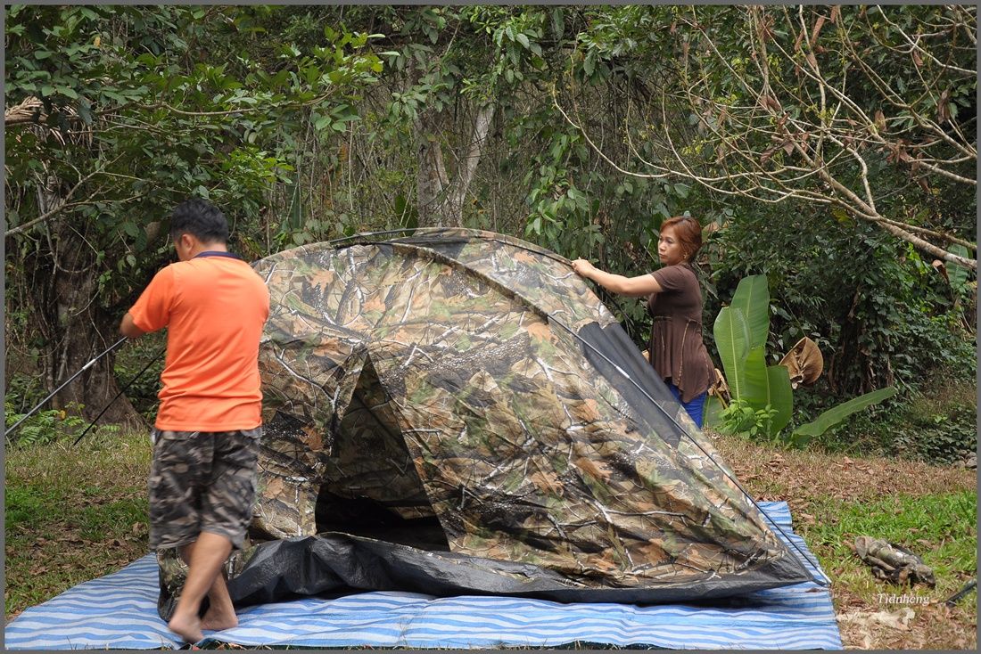 พอจับจองพื้นที่ได้สิ่งแรกที่เราทำก็คือ กางเต๊นท์