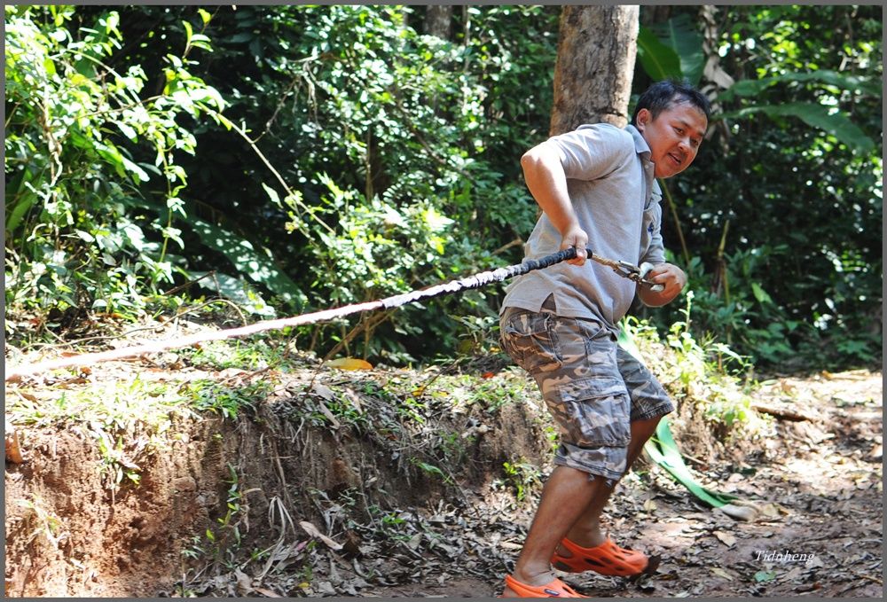 ต้นไม้ต้นนี้เกิดมาเพื่อเป็นหลักวินช์ที่ดึ แต่ลำต้นก็เต็มไปด้วยบาดแผลของความมักง่ายใช้สายสลิงคล้องกับต้นโดยตรง ควรใช้สายลากรถแบนคล้องก่อนแล้วใช้สลิงตะขอเกี่ยวอีกช่วง
