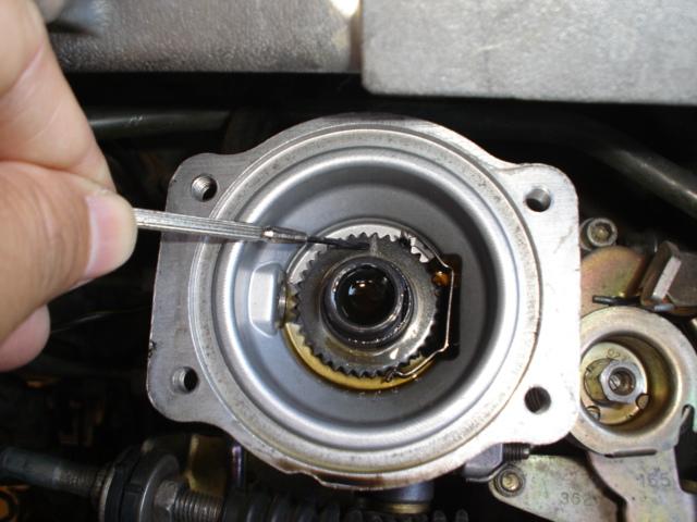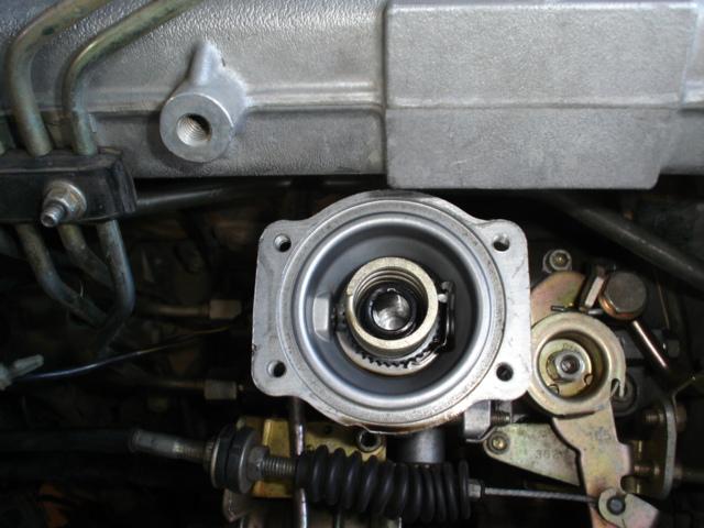 สังเกตุตรงแกนเหล็กทรงกรวยควำ ตรงปากกรวยจะมีรอยเว้า ตรงนี้จะเป็นตัวปรับจ่ายน้ำมันมากหรือน้อย แล้วแต่ว่าเราจะตั้งมาร์ค 0 ไว้ตรงไหน ถ้า 0 หันไปทางหน้ารถ จ่ายน้อย ถ้า 0 หันมาทางหลังรถ จ่ายมาก