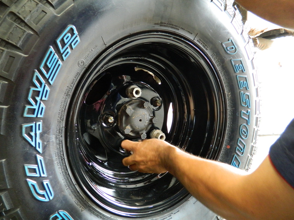 เป็นกระทะเดิมของแลนด์ ผมเอาไปทำสีดำเงาแล้วกลับด้านในออกด้านนอกตอนนี้จุกเติมลมยางก็อยู่ด้านใน เวลาจะเติมลมทีต้องมุดเติมใต้ท้องรถเอาครับ