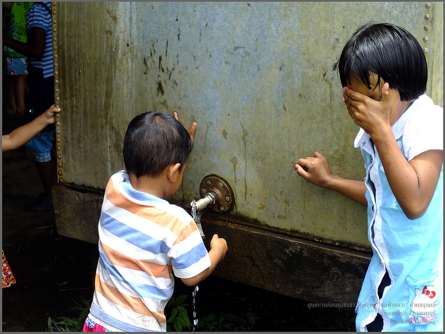 แท๊งค์เก็บน้ำฝนของโรงเรียน หลังจากอิ่มก๋วยเตี๋ยวกับไอติม ขอล้างหน้าล้างปากสักหน่อย ชื่นใจ