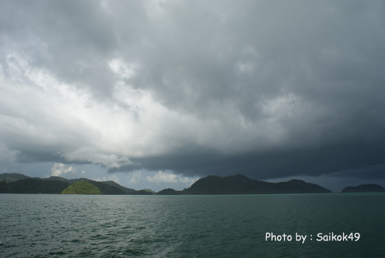 ฝนกำลังตกในทะเล...ท้องฟ้ามืดเหมือนไม่ใช่ตอนเช้า