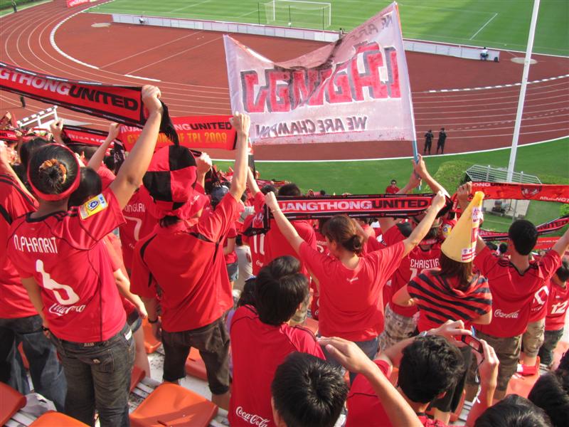 - กองเชียร์เมืองทองฯ วันนี้แทบลุกไม่ขึ้นปวดขาไปหมดสงสัยกระโดดโลดเต้นเชียร์หนักไปหน่อย