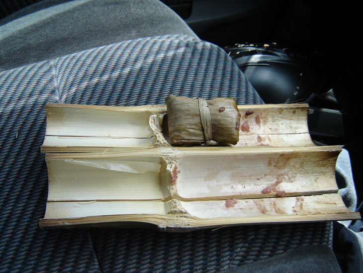 ย่ามที่เตรียมไว้ก็ลืมเอามา เลยต้องมัดอย่างนี้ ไม่กล้าทำข้างนอกต้องแอบมามัดข้างใน แบบว่าอาย