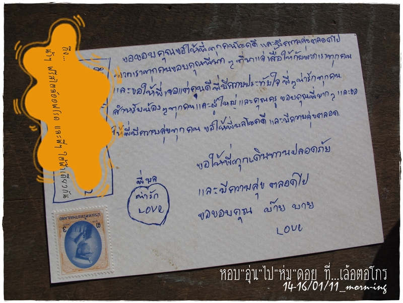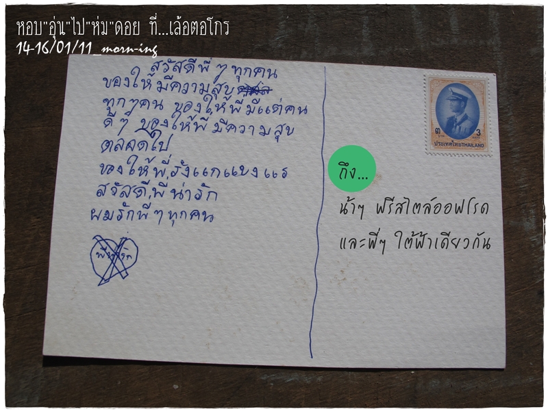 มาแล้วจร๊า...งานนี้มีภาพมาให้ชมกันเล็กน้อยเอาแบบว่าน่ารัก น่ารัก แซวน้องๆ นิ๊ด หน่อยๆ แซวกันเองบ้าง และแอบซึ้งด้วยข้อความจากน้องๆ ในหน้ากระดาษความกว้างแค่โปสการ์ดหนึ่งใบ แต่ความตั้งใจและใจความกว้างกว่านั้นมากมาย อ่านแล้วหายเหนื่อยเลย...