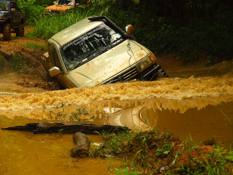 ภาพนี้สวยมากครับ คลื่นมา น้ำอีกส่วนยังเป็นกระจกเงาเห็นเส้นโค้งของกระจกรถ