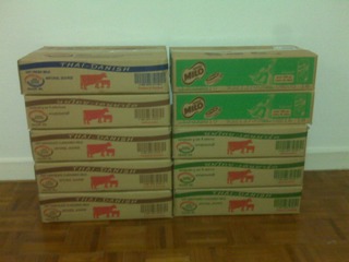วันนี้เลิกงานจะไปซื้อนมกล่อง (รสต่างๆ) และ โอวัลตินกล่อง ประมาณ 10 -12 ลัง