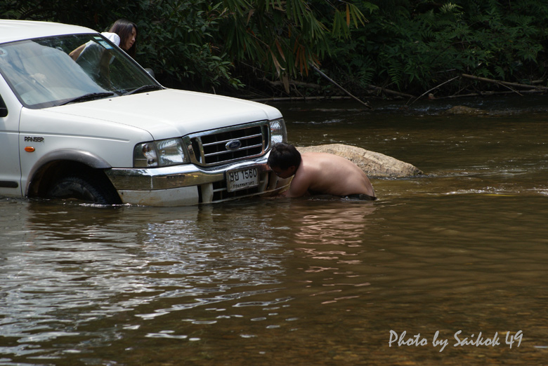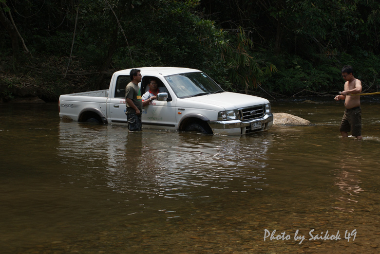 รถเข้าเจ้าหน้าที่อะไรก็ไม่รู้ ติดอยู่กลางน้ำ