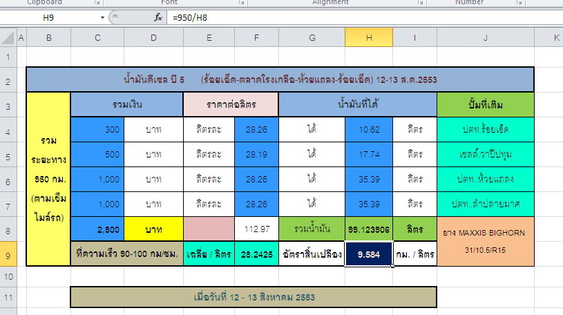 ผมใช้ โรดิโอ 2800 cc ปี 2000 โบ เติม 500 บาท ได้ 16.59 ลิตร วิ่งได้ 250 กิโล (น้ำมันลิตรละ 30.13 บาท)